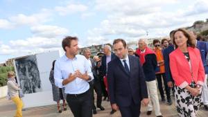 Emeric Glayze, du prix Carmignac, parcourt l_exposition avec Sébastien Lecornu, secrétaire d_État, et Ségolène Royal, ambassadrice des pôles. | OUEST-FRANCE